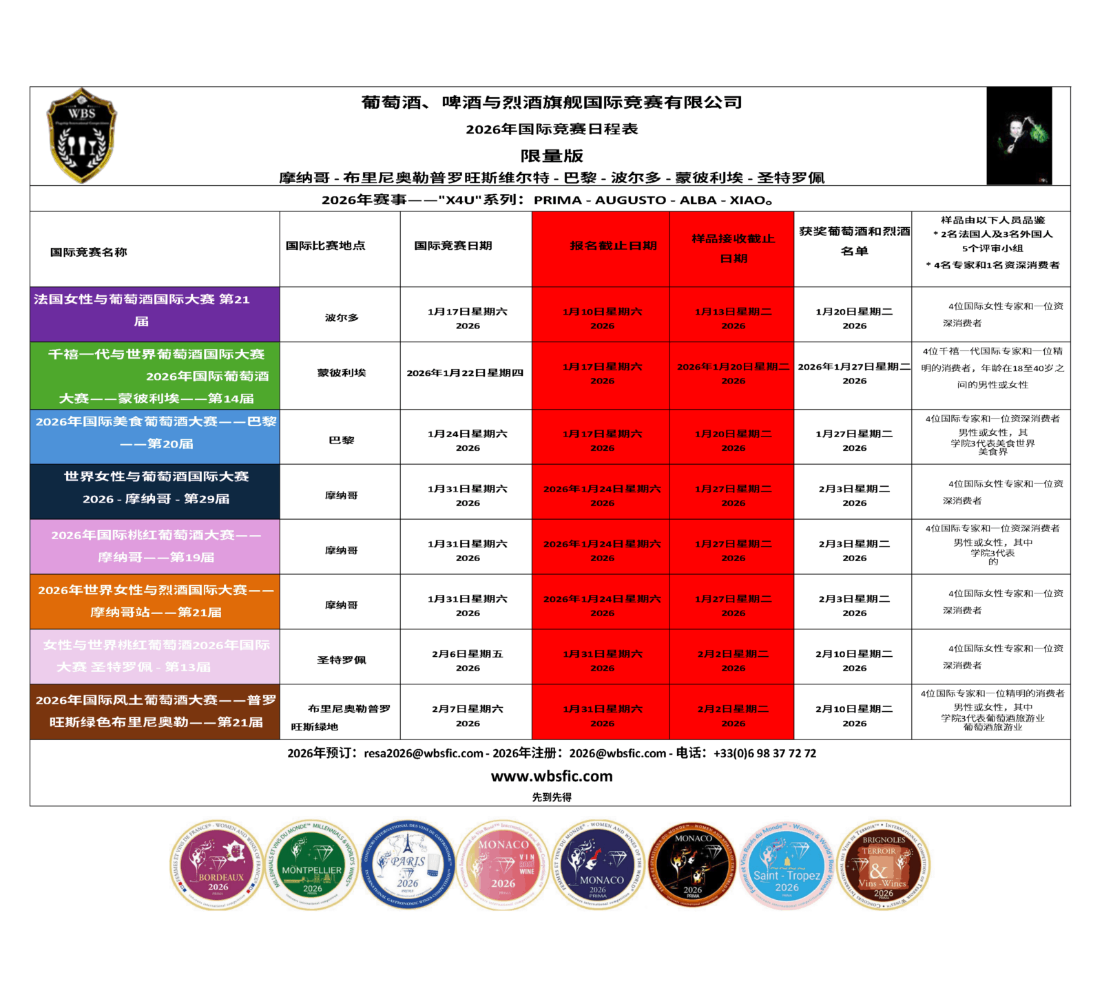 世界葡萄酒由葡萄酒,酿酒,葡萄栽培,葡萄酒旅游,普遍爱好葡萄酒的公众,媒体,美食以及商业的国际女性专家独家品尝和评判。